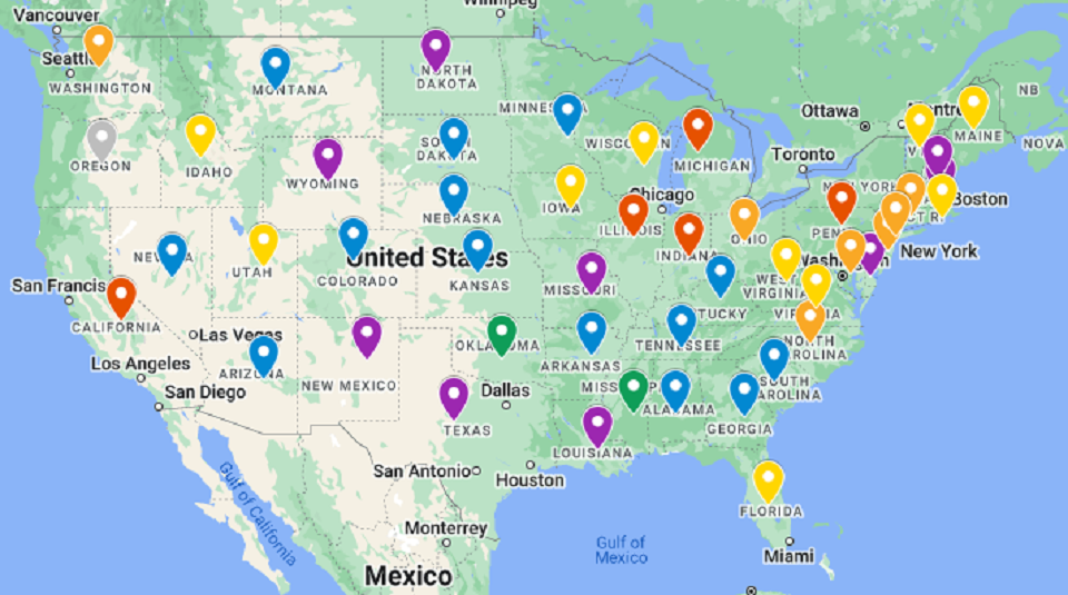 This new map has a single marker for each state and with just a click, you can see the tax rate for that state. Since it utilizes Google maps, it can be zoomed in or zoomed out for easy use in the smaller northeastern states.