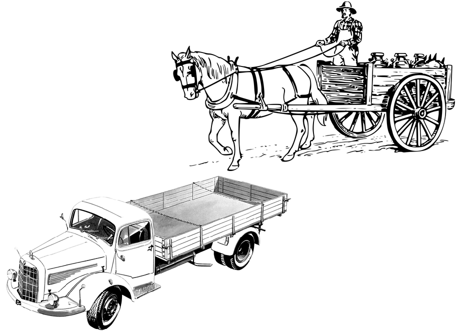 After John Farmer loaded the last of the produce onto his old, nearly worn out wagon, he climbed aboard, grabbed the reins and with a little “hup”, he urged the two old mares to start the journey to town. Slowly, the old tired horses began to pull the heavily laden wagon with the weary farmer along the rutted road towards the market. With creaking wheels and bulging sides, the old wagon had seen better days, but the resourceful farmer had no desire to give it up, beside he didn't want to part with the mares that had served him well over the years. Along the way to town John was passed by Theodore Plowright in his new truck, John preferred the old slower horse drawn wagon over these new automobiles. He had seen plenty of automobiles and even trucks in town when he took his crops to market, but he thought it was a passing fancy and didn't want to spend his hard earned dollars on new equipment when he already had perfectly good horses. He would just continue on as always and the rest of the world would just have to work around him if need be. And life went on this way until his horses fell ill and there was no way to get the wagon to market. While he procrastinated about whether to buy more horses or get a dreaded automobile, which he despised, the crops were rotting in the fields or going to seed. Finally, John decided he couldn't wait any longer and walked to town to purchase a truck to pull his wagon, only to realize he didn't know how to operate it. With a heavy heart he returned home the same way he had come, on foot. He had waited and resisted new technology and now, although he realizes it, he is now going to have to catch up with society or find another means to earn the money he needs. Make no mistake, John is a very knowledgeable farmer and very capable of using the old methods, but his refusal to move forward with new technology has left him behind. He now realizes that he was his own worst enemy, refusing to adapt to the advancements in agriculture and transportation. Meanwhile, his neighbor Theodore Plowright, had turned his horses to pasture and purchased a truck to pull his wagon a couple of years ago. Teddy also retired his plow horse in favor of a new piece of machinery to pull his plow. Teddy took a new line of thinking as he saw the emerging technologies, not as if this new technology was reinventing the wheel but definitely improving on the design of it. Matthew Carpenter, another neighbor of John Farmer, also saw that these new trucks could help him get his building materials from town and the mills to his customers quicker and easier. He can only build during the daylight hours, so saving time transporting the lumber, paints, tools and hardware he needs to his worksite, gives him more time to complete the work and gain more customers.