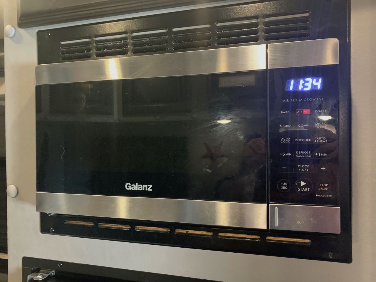 A year later, I use all of the features of the Galanz almost daily as they are straightforward to use. I do not think the air fryer selection works as fast as the stand-alone air fryer, but I can cook more things at once if needed. The other problem with air frying in the Galanz is frying bacon as the drippings drop onto the microwave’s glass plate and make one heck of a mess. I have baked several items in the convection oven and like how easy it works, and this feature does not seem to heat the truck.