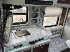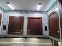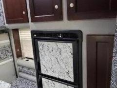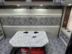 This unit has a 100' Bolt Custom Sleeper with a dinette, double door Refrigerator/Freezer, Sink, Microwave, Roku Smart TV, Soundbar, and Loads of cabinets.