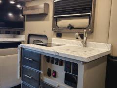 Cooktop stove, large refrigerator and separate freezer, large countertop and sink, convection oven, TV, Shower and Toilet and lots of closet space and rooftop AC unit.