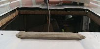 I'll probably peel and scrape back the caulk all the way around, check the putty under edge at the middle dropped section, and make a judgement then if I need to reinstall the whole fan with new putty or not. I suspect it will be fine.