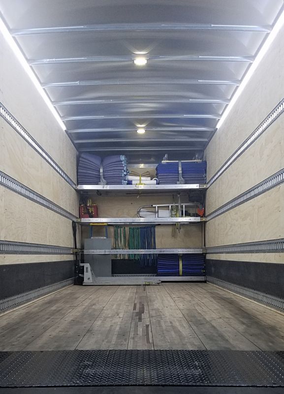 I recently purchased the materials to get this done in my own box. LED light strips (12 volt) can be found online for a very reasonable price. Installation only took a couple of hours from start to finish. You may be able to do the job a little quicker, but I am meticulous about proper connections and hiding all the wires. The LED lights I purchased and installed were self stick with 3M tape and just 2 wires to connect. Since I already had 2 lights on the ceiling with a switch in the cab, I was able to connect these to the existing light and it made the install a breeze. If you use a self stick LED light strip (or really anything self stick), it is a good idea to wipe the area with alcohol first to get the best adhesion.