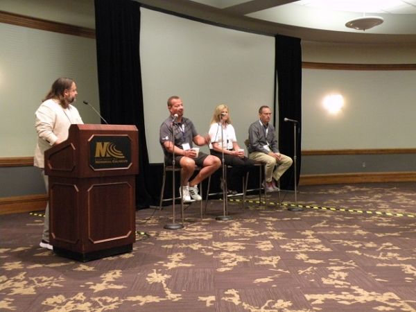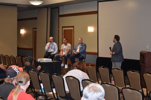 New this year were sessions or workshops on the show floor. They were moderated by Brandon Baxter and seem to go over very well. Here is the stick note session that we were asked to be on. What it was you stopped by the On Time Media / Expediters Online booth and write your question down on a “sticky note” and put it on the white board. Then at the session Brandon would pick ones for the panelist to respond to.