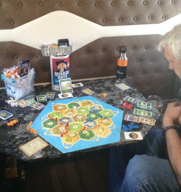 Using Face time on our phones we are able to play one of our favorite new games "Settlers of Catan". The person or in some cases the persons not at the table with the game give directions to those of us that can roll for them and also collect their cards. With technology everyone can hear each other and the banter is still hilarious as one loses out on an opportunity or gains a card over the other one.