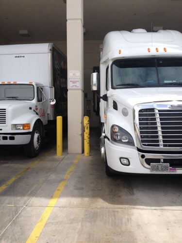 9. When backing underground or into a closed in dock get out and inspect the dock as you will be backing blind for a little bit till your mirrors are inside the building. These to me are the trickiest docks and my stomach still clenches a little when I see them. If you tap your breaks when backing into them that can help to illuminate where the back of the truck is located. When ever possible get a spotter on the ground to help you. We use our phones to stay in contact while using a head set for directions.