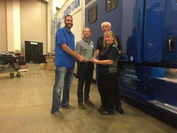 Brandon, ARI Legacy Sleeper - Nate, Stoops Freightliner, Us, Bob & Linda Caffee with the People's Choice Trophy