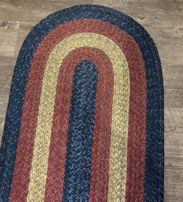 While Bob is working on the outside I will be working on the inside of our ARI sleeper to make it ours. I am not an interior decorator and usually have a very eclectic style of basically if I like it and I have room for it use it. . Not everyone appreciates my style including truck show judges. After the Expedite Expo and some great suggestions from friends, I decided to go with an Americana interior. Now to see if was able to pull it off. My favorite and I do mean my favorite is this rug I bought.