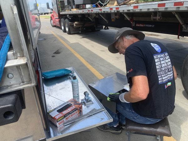 What we can do is take in a truck that is clean and has potential. Bob has not let time slip away as he has added four belly boxes and manufactured two aluminum boxes to enclose the back corners above the liftgate. He made these at home and while on the road we got them installed after he polished them. We also have two side skirts that are at the painters that will go under the sleeper. Those did not get finished in time for this truck show.