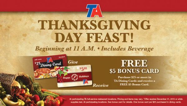 For the past many years we have not made any effort to be home or with family on Thanksgiving. We will stay out till Christmas and then stay home for a couple of weeks over New Years Day. It is an easy trade off when the TA-Petro Stopping Centers serve a really nice buffet on Thanksgiving.