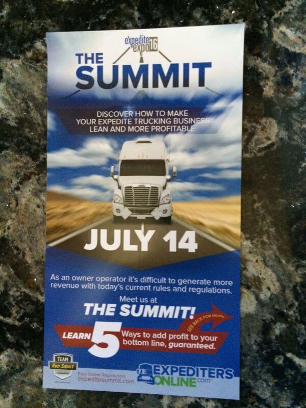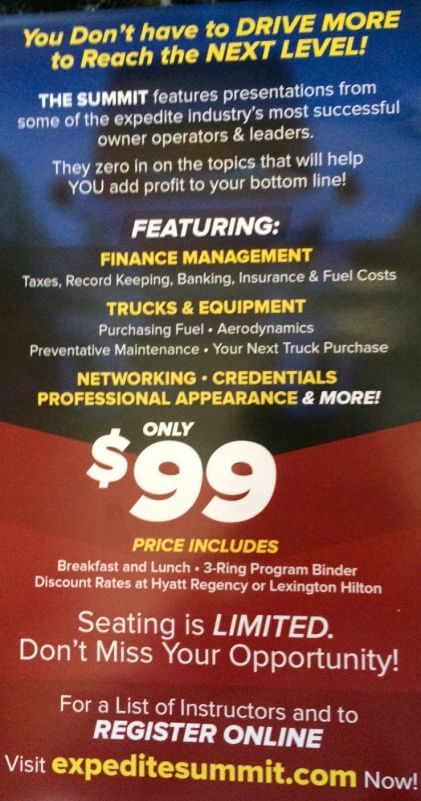 Expedite Expo will be held in Lexington, Kentucky July 15 & 16 with lots of workshops. The day before the Expo the first annual "Summit" will be held on July 14th. This all day workshop is about raising the bar to increase your profits.