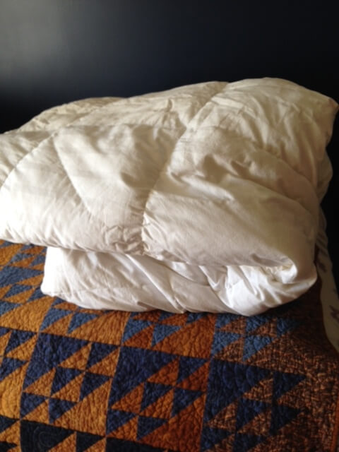 Our down comforter stays in the truck all year. The down that keeps us warm in the winter also keeps us cool in the summer. Down comforters are highly breathable and wick moisture away from the skin and will help to keep us from over heating. What I enjoy most about the down comforter is that Bob is always cold and I am always hot and the down in the comforter keeps us both comfortable in the heat or the cold.