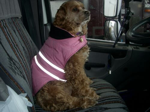 In 1999 when we decided to go trucking full time we knew Molly would be going with us. Molly had thousands of miles on her, she loved to travel, and she was well behaved. She went to many of the girl's track, cross-country, and softball tournaments and watching the kids show their sheep, pigs, and horses at events. She knew how to travel. What she did not know was how to travel in a truck and her reaction to the movement of the first truck was surprising.
