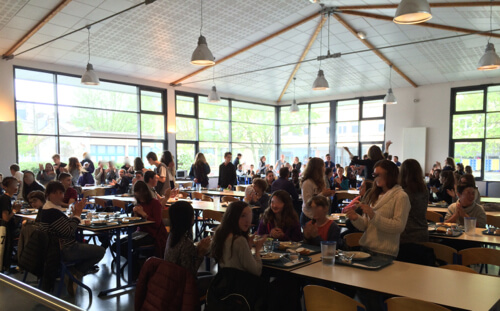 One of our favorite students, Morigann, made us one of her famous cakes that we have seen pictures of over the years. The cake was fantastic and it was a pleasure to meet Morigann and her sister Lilwenn as well as their dad Gil. After a short break we were escorted to the cafeteria to meet the parents.