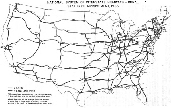 The Federal Aid Highway Act was to create an all-freeway system of roads. All roads were built with the same standards. Most of the funding for these freeways were funded by the federal government. But the ownership is retained by the state they were built in.