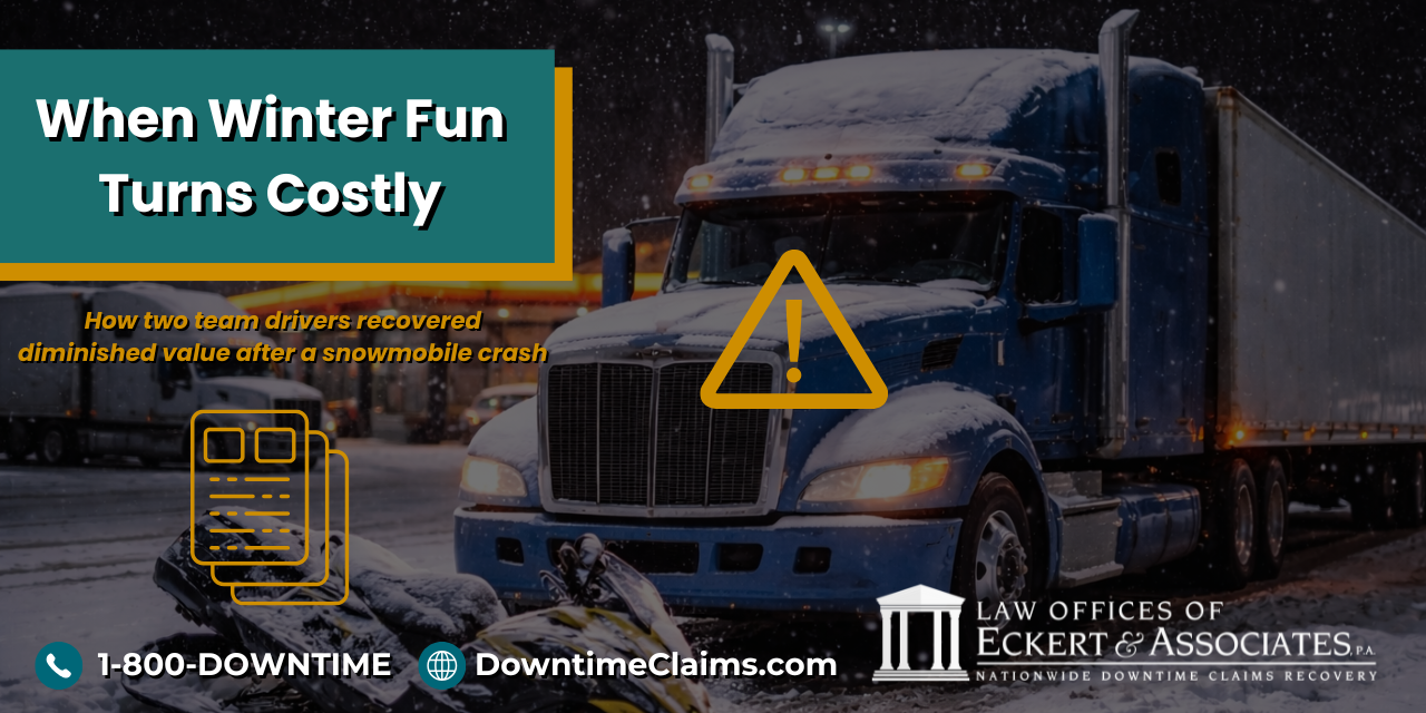 Unsure how to proceed, Jake reached out to Eckert & Associates, a firm known for representing truck drivers in property damage and downtime claims. After reviewing the accident, repair records, and dash cam footage, the team confirmed what Jake suspected: the Kenworth had suffered diminished value, and the snowmobiler’s insurance company could be held responsible for that loss.