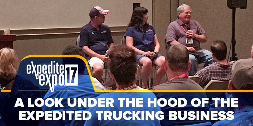 That’s precisely the type of workshop attendees got to experience in a session titled “The ABC’s of Expedite Driving” at Expedite Expo 2017 on July 14 at the Lexington Center in Lexington, Ky. The workshop featured moderator John Mueller, founder of The Transportation Station LLC, and panelists Tom and Tina Evans, fleet owners with Load One, and Ed Estes, an owner-operator with Bolt Express.
