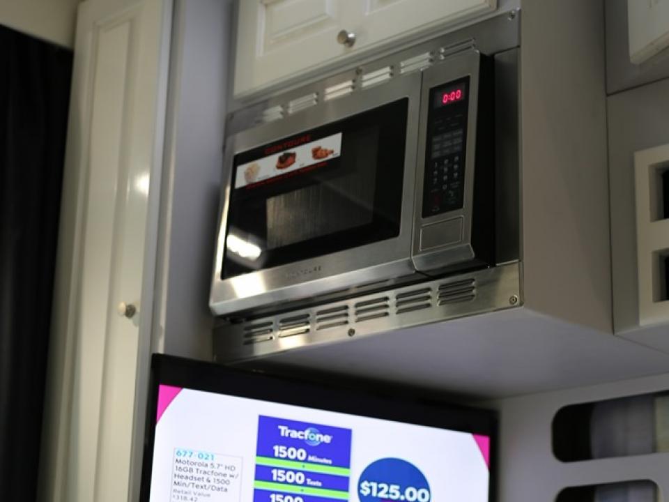 - Stainless Steel Appliances Throughout with Barnwood Tile Flooring and Solid Surface Countertops. Microwave + Convection Oven with Rotisserie