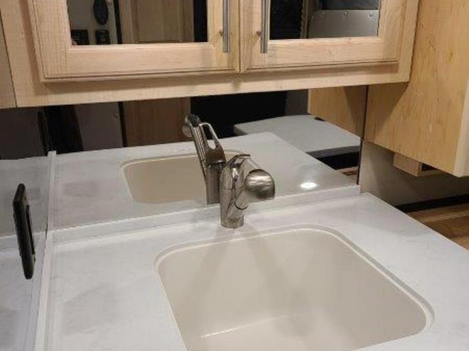 - Stainless Steel Appliances Throughout with Barnwood Tile Flooring and Solid Surface Countertops. Microwave + Convection Oven with Rotisserie