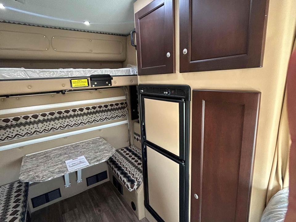 96’’ Bolt Double bunk Custom Sleeper/ Large bottom bed/ Dinette. Foldable Upper Bunk, Convection Microwave. 24’’ Smart TV / Sink/ Full Size Fridge/ 2200 Watt Inverter/ Shore power.