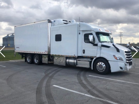 Expediter Truck with 22' Dry Freight Cargo Box on Freightliner Cascadia Class 8 Tractor! These trucks are equipped with 72" factory sleeper with double bunks for team operation. There is a fridge/freezer and 1500 Watt Inverter. ThermoKing TriPac Evolution APU will provide HVAC and power while parked, and Espar heater will keep you warm on those cold nights. Easy to operate with Eaton Fuller Ultrashift 10 speed Automated...