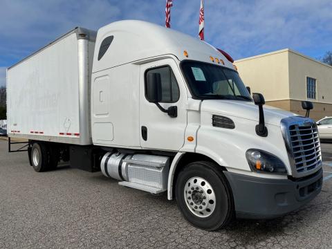 Expediter Truck with 22' Dry Freight Cargo Box on Freightliner Cascadia Class 8 Tractor! These trucks are equipped with 72" factory sleeper with double bunks for team operation. There is a fridge/freezer and 1500 Watt Inverter. ThermoKing TriPac Evolution APU will provide HVAC and power while parked, and Espar heater will keep you warm on those cold nights. Easy to operate with Eato...